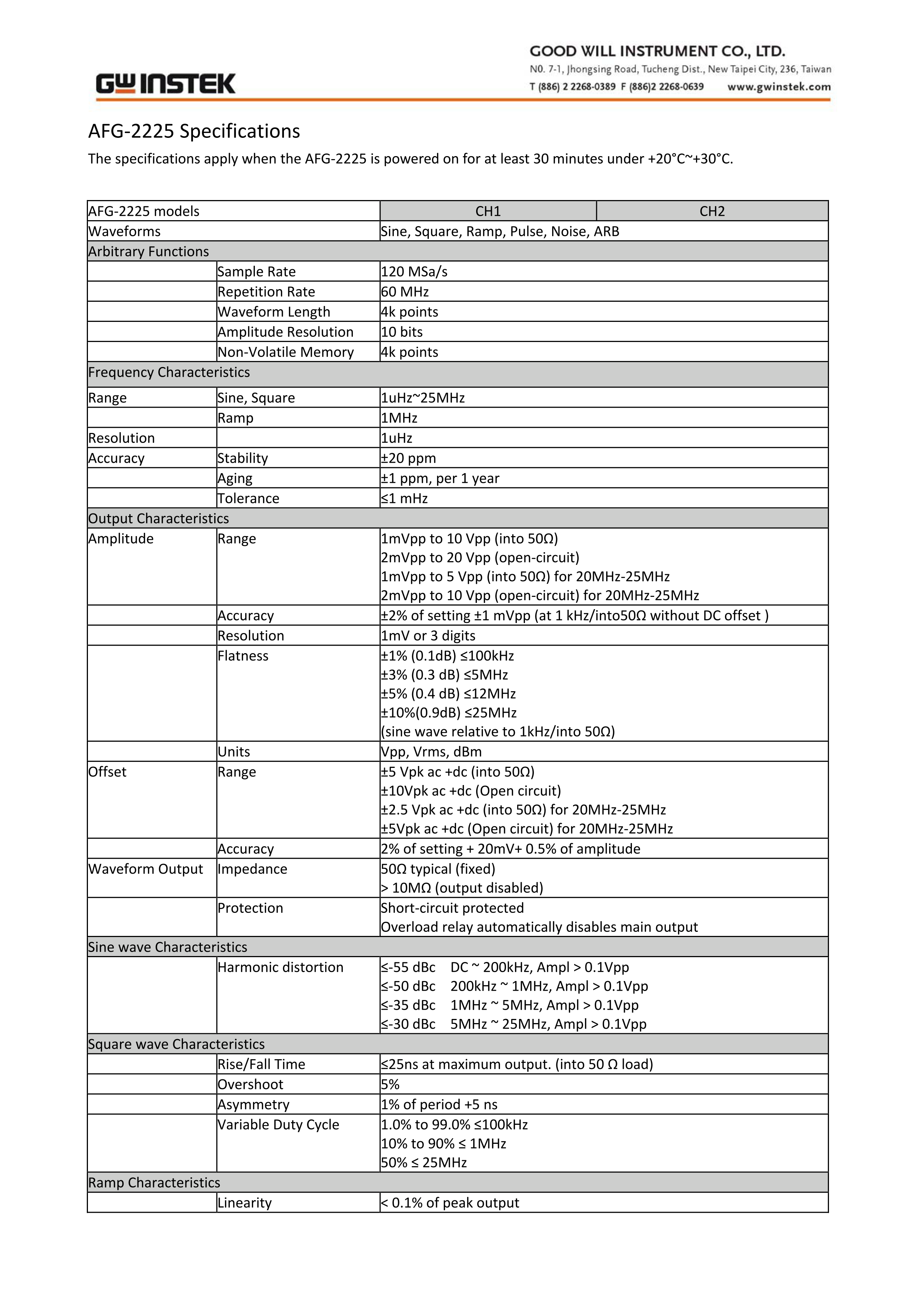 GW Instek is launching AFG-2225, its first basic level dual-channel arbitrary function generator, which provides superior features in its class. Both channels are equipped with same characteristics to fit dual-signal applications such as differential or IQ signaling. The outstanding cost-performance value makes the AFG-2225 a practical instrument to accelerate the development process.