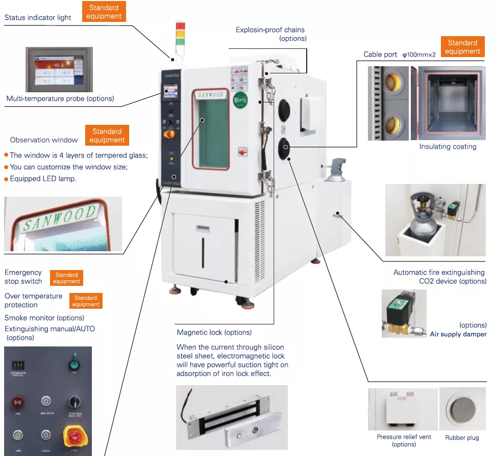 The explosion-proof level of the battery explosion-proof temperature test chamber manufactured by Sanwood Technology is generally configured to HAZARD LEVEL6, and the specific configuration is as follows: