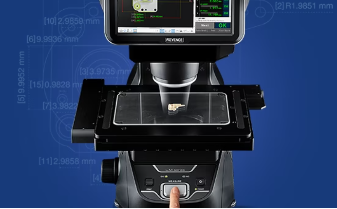 The LM Series High-Accuracy Instant Measurement System is an automated inspection system that can perform measurements to +/- 0.7μm accuracy and +/- 0.1μm repeatability at the push of a button. Similar to the IM Series, the unit has built-in edge detection with automatic focus and lighting. The unit also automatically records measurement data and creates detailed inspection reports. The image showcases our latest LM-1100 model which houses high-resolution double telecentric lenses for precision optical inspection and a large 9 x 5” field of view.