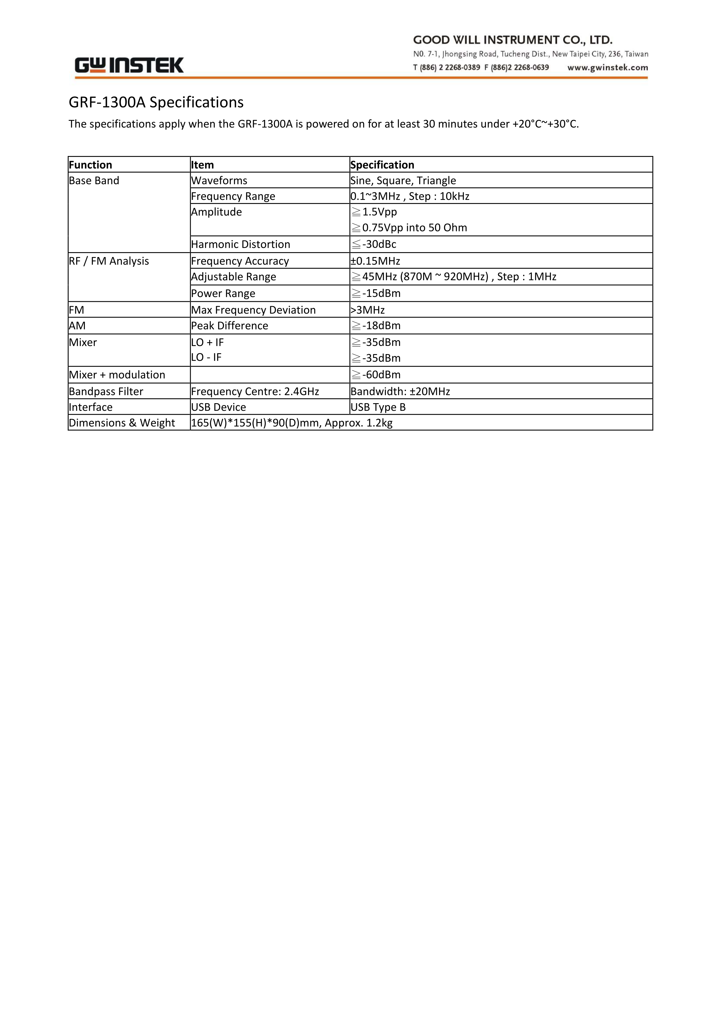 The combination of USG signal generator and GRF-1300A Mixer function can produce 2.4GHz AM and FM modulation signals. GRF-1300A Bandpass Filter can purify the output signals by filtering out harmonic and spurious produced by Mixer output signals.