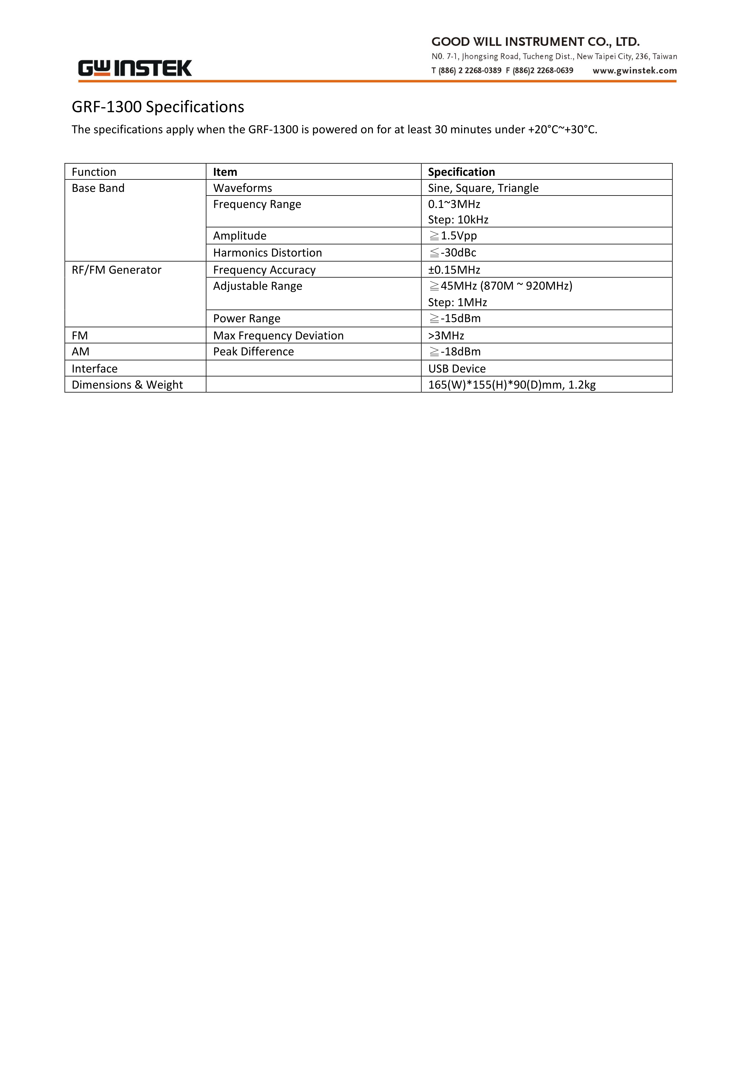 The combination of GSP-730 and GRF-1300 forms a fundamental training system for RF communication and telecommunication classes in the universities, colleges, vocational schools, and the training centers in military as well as private companies. Instead of the tremendous cost of the installation of new training system, the conjunction of GSP-730 and GRF-1300 provides an economic solution to eliminate two obstacles, budget constraint and insufficiency of teaching tools.