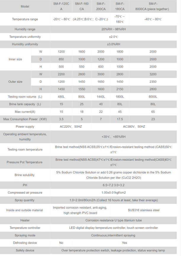 Temperature humidity and salty spray test chamber can determine the corrosion resistance of iron metal or the iron metal inorganic film or organic film test, such as: electroplating, anode processing, conversion coating, painting, ect.